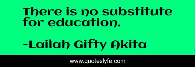 This page presents the quote "There is no substitute for education.". Author of this quote is Lailah Gifty Akita. This quote is about wise-sayings, study, education, learning, student,.