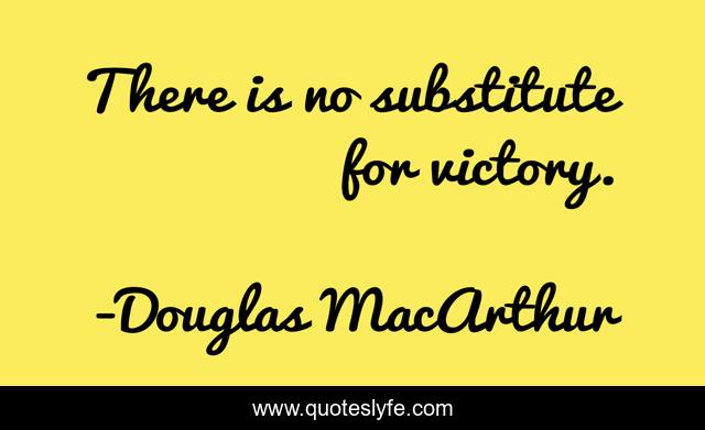 This page presents the quote "There is no substitute for victory.". Author of this quote is Douglas MacArthur. This quote is about victory, substitute,.
