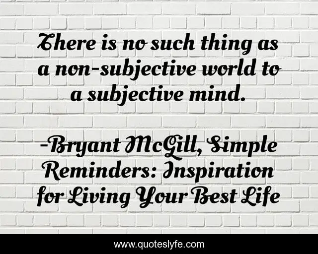 This page presents the quote "There is no such thing as a non-subjective world to a subjective mind.". Author of this quote is Bryant McGill, Simple Reminders: Inspiration for Living Your Best Life. This quote is about teaching, subjectivity, wisdom,.