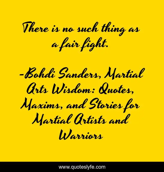 This page presents the quote "There is no such thing as a fair fight.". Author of this quote is Bohdi Sanders, Martial Arts Wisdom: Quotes, Maxims, and Stories for Martial Artists and Warriors. This quote is about fair-fight-spirit, fair-fight, bohdi-sanders, fight, fighting, fighting-spirit, martial-arts,.
