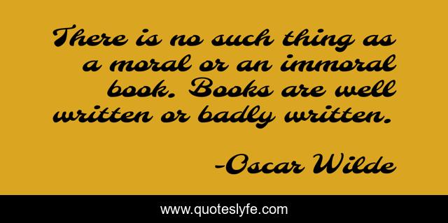 This page presents the quote "There is no such thing as a moral or an immoral book. Books are well written or badly written.". Author of this quote is Oscar Wilde. .