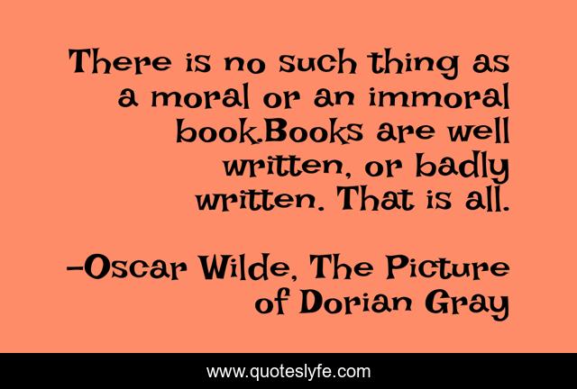 This page presents the quote "There is no such thing as a moral or an immoral book.Books are well written, or badly written. That is all.". Author of this quote is Oscar Wilde, The Picture of Dorian Gray. This quote is about poet, novelist, books, dramatist, morality,.