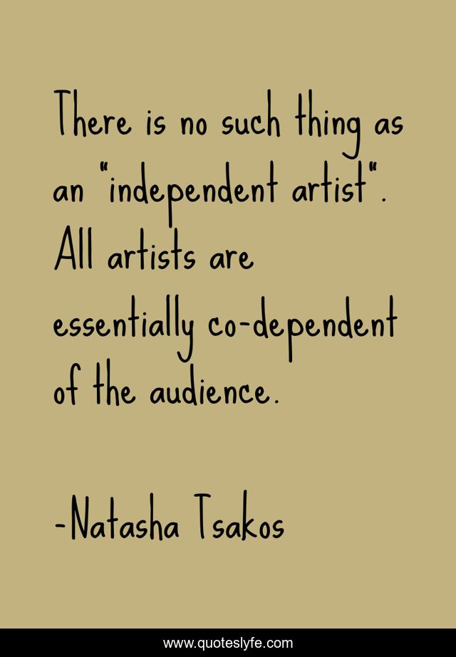 This page presents the quote "There is no such thing as an “independent artist”. All artists are essentially co-dependent of the audience.". Author of this quote is Natasha Tsakos. This quote is about performance, audience, collaboration, independence, artists,.