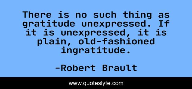 This page presents the quote "There is no such thing as gratitude unexpressed. If it is unexpressed, it is plain, old-fashioned ingratitude.". Author of this quote is Robert Brault. This quote is about gratitude, thankfulness,.
