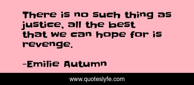 This page presents the quote "There is no such thing as justice, all the best that we can hope for is revenge.". Author of this quote is Emilie Autumn. This quote is about justice, revenge,.