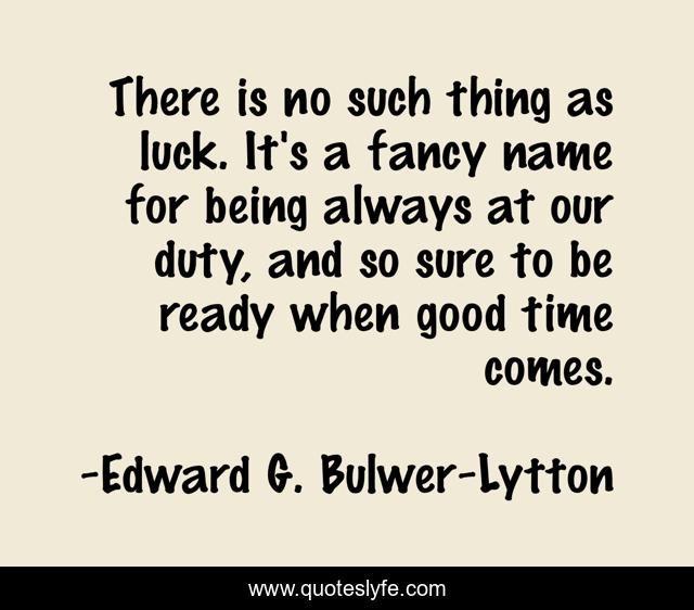 This page presents the quote "There is no such thing as luck. It's a fancy name for being always at our duty, and so sure to be ready when good time comes.". Author of this quote is Edward G. Bulwer-Lytton. This quote is about good, time, luck,.