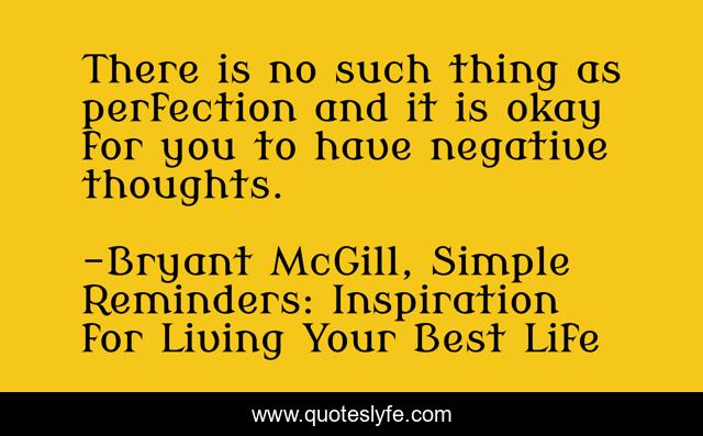 This page presents the quote "There is no such thing as perfection and it is okay for you to have negative thoughts.". Author of this quote is Bryant McGill, Simple Reminders: Inspiration for Living Your Best Life. This quote is about teaching, negativity, perfection, thoughts,.