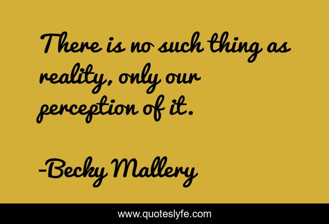 This page presents the quote "There is no such thing as reality, only our perception of it.". Author of this quote is Becky Mallery. This quote is about science, perception, reality, life-lessons, nlp,.