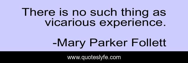 This page presents the quote "There is no such thing as vicarious experience.". Author of this quote is Mary Parker Follett. This quote is about self, reliance,.