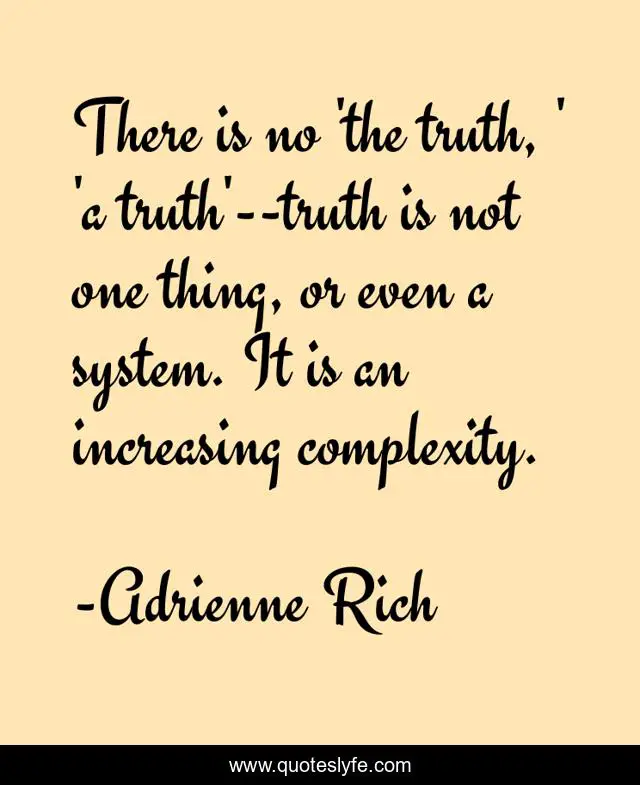 "Adrienne Rich Quotes." Quoteslyfe.com, 2025. Sat. 06 Dec. 2025. <https://www.quoteslyfe.com/quote/There-is-no-the-truth-a-truth-9801>.