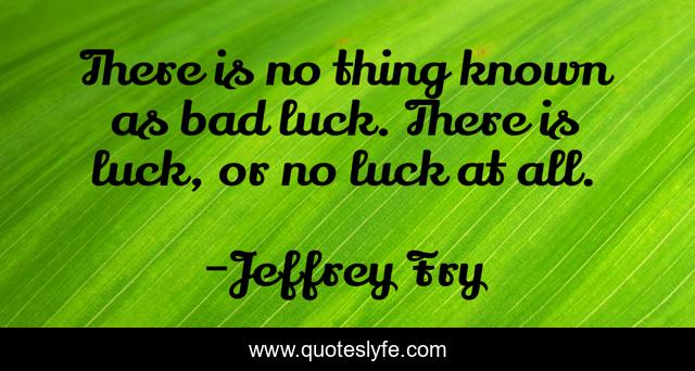 This page presents the quote "There is no thing known as bad luck. There is luck, or no luck at all.". Author of this quote is Jeffrey Fry. This quote is about no-luck, there-is, bad-luck, known, luck, no-thing, at-all,.