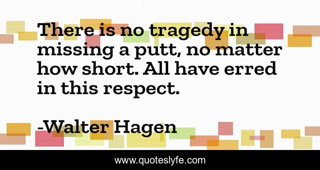 This page presents the quote "There is no tragedy in missing a putt, no matter how short. All have erred in this respect.". Author of this quote is Walter Hagen. This quote is about matter, short, tragedy,.