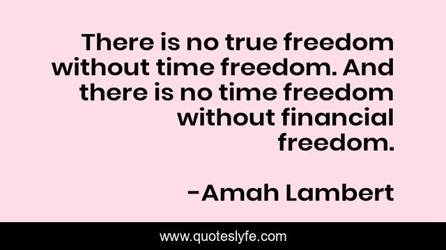 This page presents the quote "There is no true freedom without time freedom. And there is no time freedom without financial freedom.". Author of this quote is Amah Lambert. This quote is about freedom, money, finance, time,.