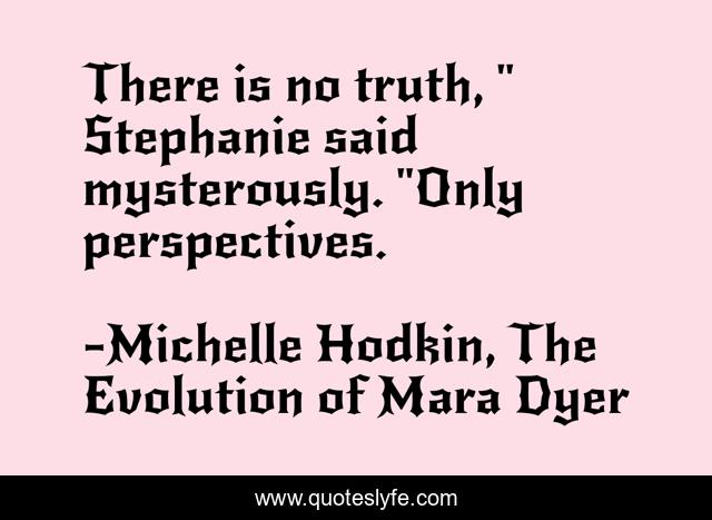 This page presents the quote "There is no truth, " Stephanie said mysterously. "Only perspectives.". Author of this quote is Michelle Hodkin, The Evolution of Mara Dyer. .