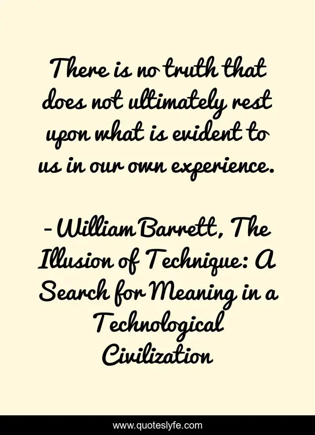 "William Barrett, The Illusion of Technique: A Search for Meaning in a Technological Civilization Quotes." Quoteslyfe.com, 2025. Fri. 05 Dec. 2025. <https://www.quoteslyfe.com/quote/There-is-no-truth-that-does-not-158739>.