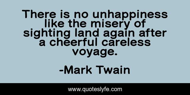 This page presents the quote "There is no unhappiness like the misery of sighting land again after a cheerful careless voyage.". Author of this quote is Mark Twain. This quote is about travel, travellers,.