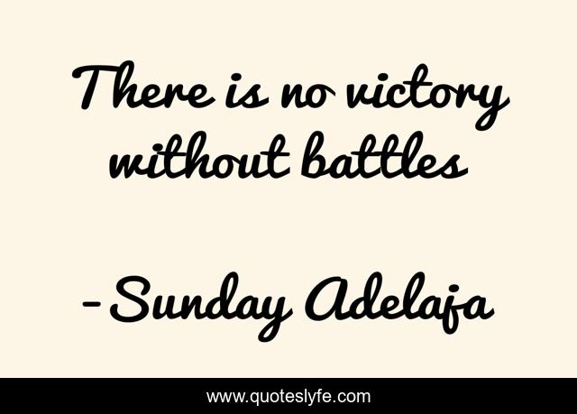 This page presents the quote "There is no victory without battles". Author of this quote is Sunday Adelaja. This quote is about victory, battles,.