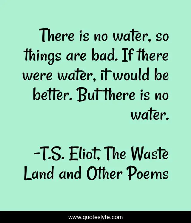 "T.S. Eliot, The Waste Land and Other Poems Quotes." Quoteslyfe.com, 2025. Sat. 06 Dec. 2025. <https://www.quoteslyfe.com/quote/There-is-no-water-so-things-are-20205>.