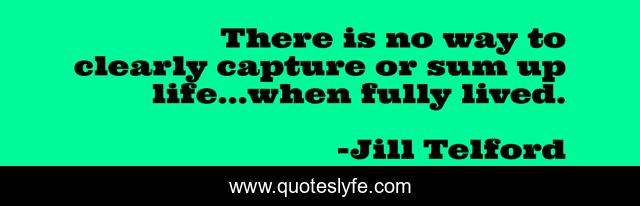 This page presents the quote "There is no way to clearly capture or sum up life...when fully lived.". Author of this quote is Jill Telford. This quote is about enthusiasm, life, inspirational, live, life-lessons,.