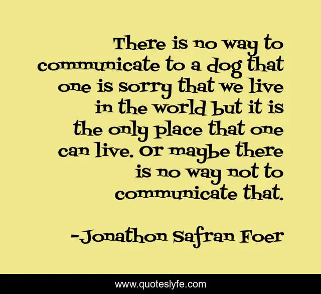 This page presents the quote "There is no way to communicate to a dog that one is sorry that we live in the world but it is the only place that one can live. Or maybe there is no way not to communicate that.". Author of this quote is Jonathon Safran Foer. .