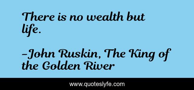 This page presents the quote "There is no wealth but life.". Author of this quote is John Ruskin, The King of the Golden River. This quote is about greed, life-lessons,.