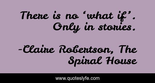 This page presents the quote "There is no ‘what if’. Only in stories.". Author of this quote is Claire Robertson, The Spiral House. .