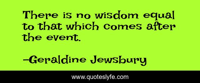 This page presents the quote "There is no wisdom equal to that which comes after the event.". Author of this quote is Geraldine Jewsbury. This quote is about , pressure, diamonds,.
