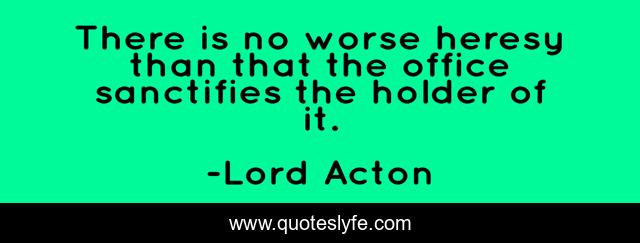 This page presents the quote "There is no worse heresy than that the office sanctifies the holder of it.". Author of this quote is Lord Acton. .