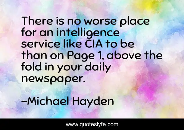 This page presents the quote "There is no worse place for an intelligence service like CIA to be than on Page 1, above the fold in your daily newspaper.". Author of this quote is Michael Hayden. This quote is about daily, service, page,.