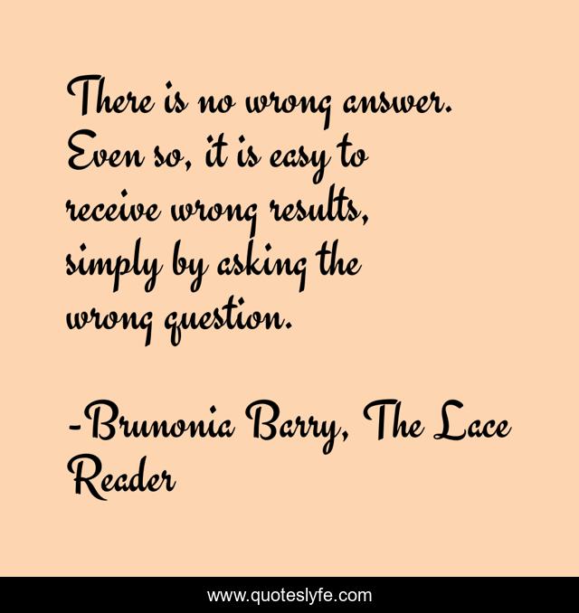 "Brunonia Barry, The Lace Reader Quotes." Quoteslyfe.com, 2025. Fri. 05 Dec. 2025. <https://www.quoteslyfe.com/quote/There-is-no-wrong-answer-Even-so-111460>.
