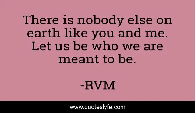 This page presents the quote "There is nobody else on earth like you and me. Let us be who we are meant to be.". Author of this quote is RVM. This quote is about motivation, inspiration,.