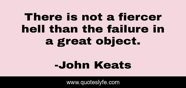 This page presents the quote "There is not a fiercer hell than the failure in a great object.". Author of this quote is John Keats. This quote is about hell, great,.