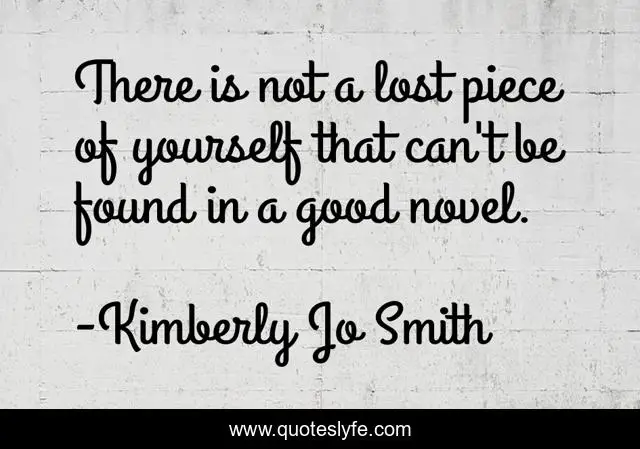 This page presents the quote "There is not a lost piece of yourself that can't be found in a good novel.". Author of this quote is Kimberly Jo Smith. This quote is about romance, historical-fiction,.