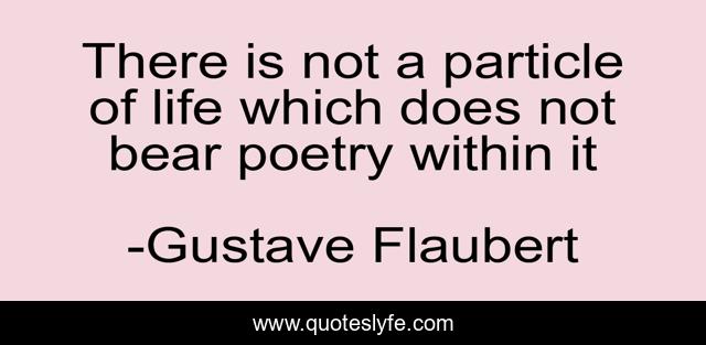 This page presents the quote "There is not a particle of life which does not bear poetry within it". Author of this quote is Gustave Flaubert. This quote is about life, poetry,.