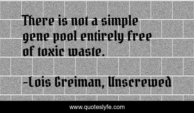 This page presents the quote "There is not a simple gene pool entirely free of toxic waste.". Author of this quote is Lois Greiman, Unscrewed. This quote is about mystery, humor, chiclet,.
