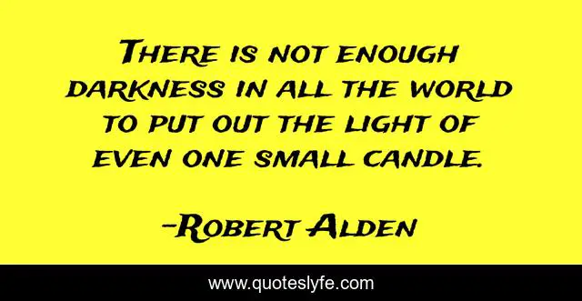 This page presents the quote "There is not enough darkness in all the world to put out the light of even one small candle.". Author of this quote is Robert Alden. .