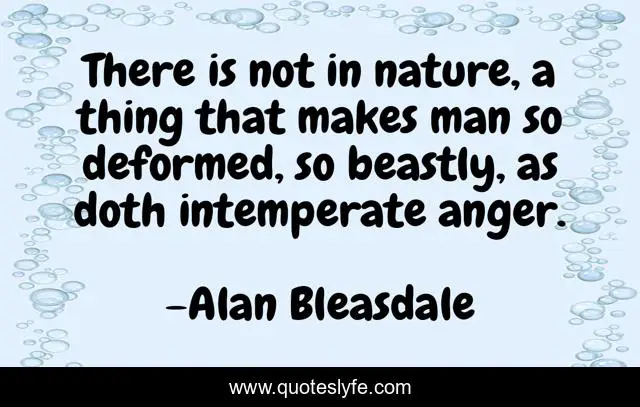 This page presents the quote "There is not in nature, a thing that makes man so deformed, so beastly, as doth intemperate anger.". Author of this quote is Alan Bleasdale. This quote is about doth, nature, man,.