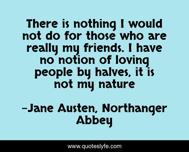 This page presents the quote "There is nothing I would not do for those who are really my friends. I have no notion of loving people by halves, it is not my nature". Author of this quote is Jane Austen, Northanger Abbey. .
