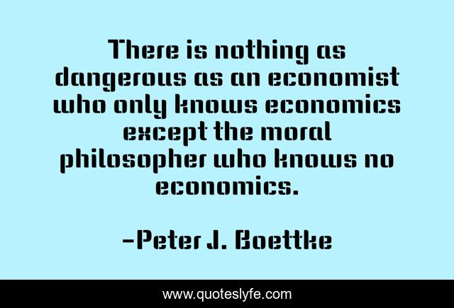 This page presents the quote "There is nothing as dangerous as an economist who only knows economics except the moral philosopher who knows no economics.". Author of this quote is Peter J. Boettke. This quote is about economics, morality,.
