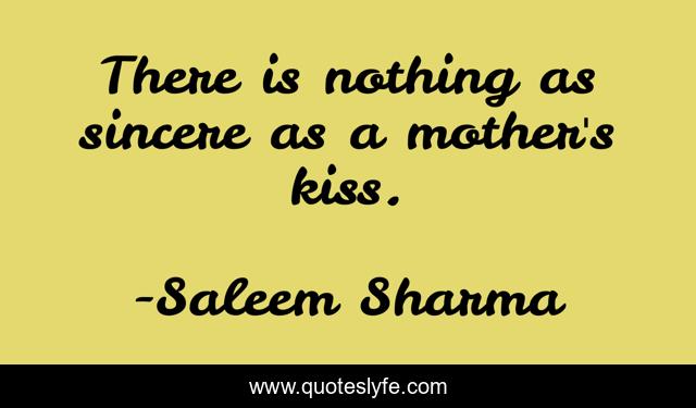 This page presents the quote "There is nothing as sincere as a mother's kiss.". Author of this quote is Saleem Sharma. This quote is about mother-s-love, mothers,.