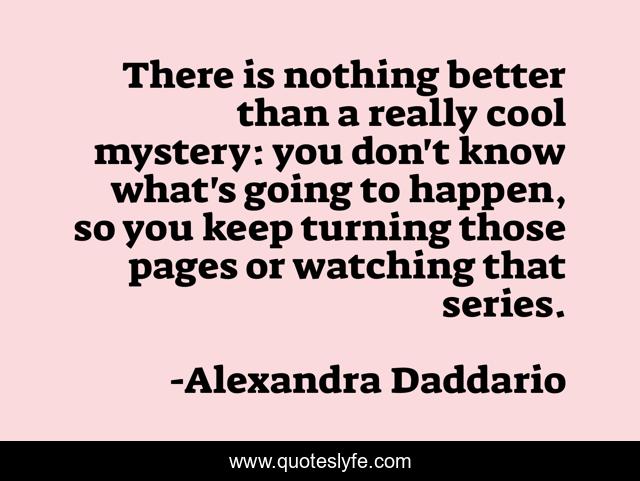 This page presents the quote "There is nothing better than a really cool mystery: you don't know what's going to happen, so you keep turning those pages or watching that series.". Author of this quote is Alexandra Daddario. This quote is about mystery, better,.
