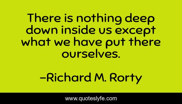 This page presents the quote "There is nothing deep down inside us except what we have put there ourselves.". Author of this quote is Richard M. Rorty. This quote is about philosophy, pragmatism,.