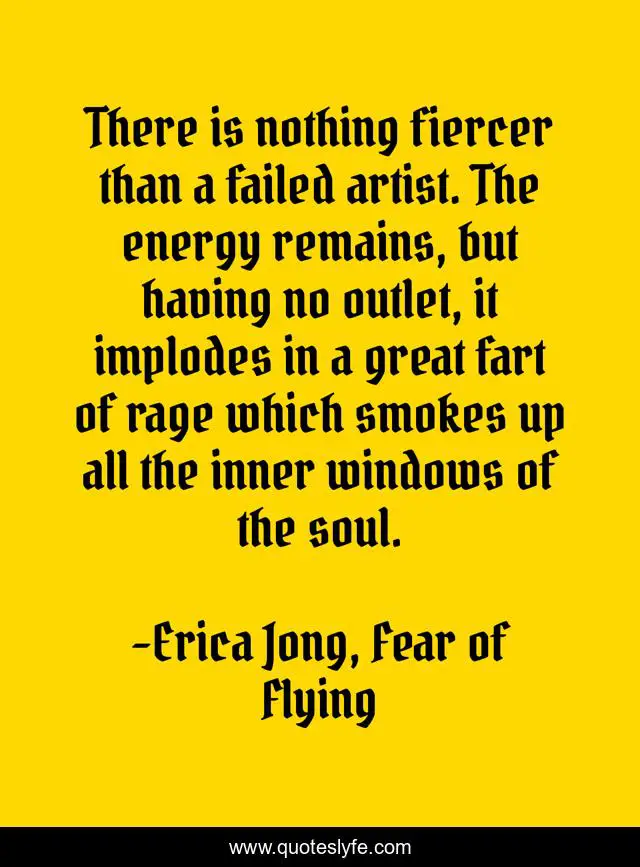 This page presents the quote "There is nothing fiercer than a failed artist. The energy remains, but having no outlet, it implodes in a great fart of rage which smokes up all the inner windows of the soul.". Author of this quote is Erica Jong, Fear of Flying. .