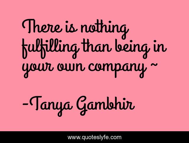 This page presents the quote "There is nothing fulfilling than being in your own company ~". Author of this quote is Tanya Gambhir. This quote is about content, life, self, selflove,.