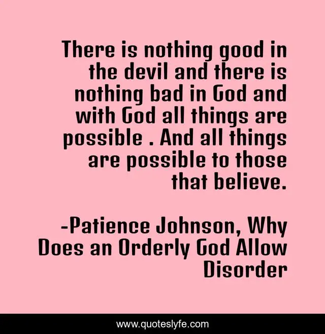 "Patience Johnson, Why Does an Orderly God Allow Disorder Quotes." Quoteslyfe.com, 2025. Sat. 06 Dec. 2025. <https://www.quoteslyfe.com/quote/There-is-nothing-good-in-the-devil-45949>.