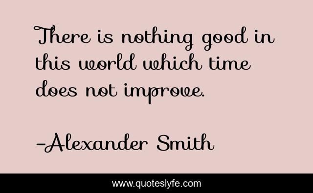 This page presents the quote "There is nothing good in this world which time does not improve.". Author of this quote is Alexander Smith. This quote is about day, one,.