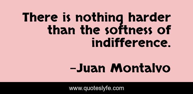 This page presents the quote "There is nothing harder than the softness of indifference.". Author of this quote is Juan Montalvo. .