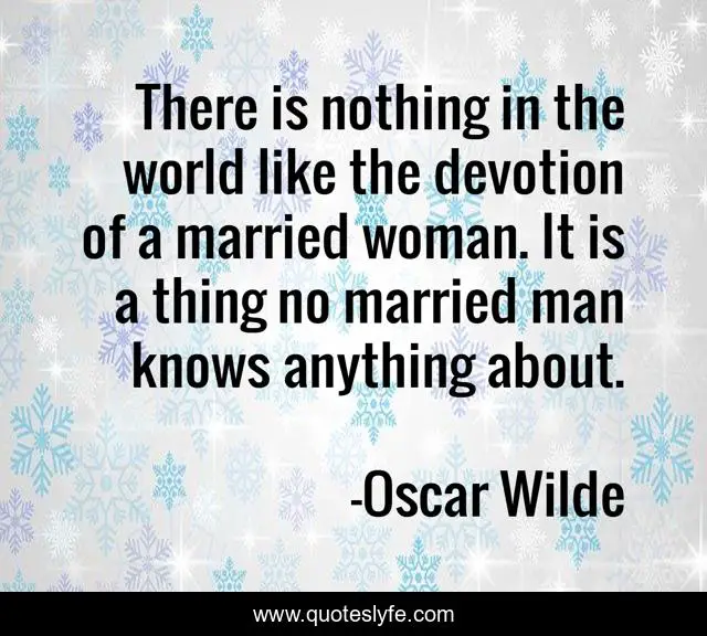 This page presents the quote "There is nothing in the world like the devotion of a married woman. It is a thing no married man knows anything about.". Author of this quote is Oscar Wilde. This quote is about world, woman, man,.