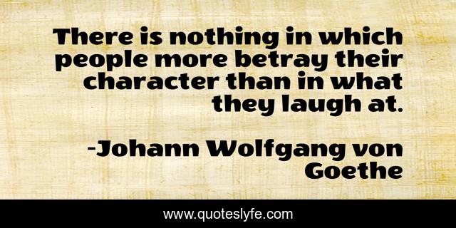 This page presents the quote "There is nothing in which people more betray their character than in what they laugh at.". Author of this quote is Johann Wolfgang von Goethe. .