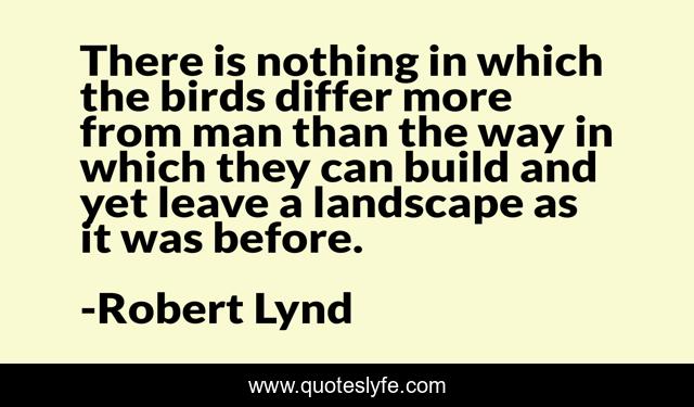 This page presents the quote "There is nothing in which the birds differ more from man than the way in which they can build and yet leave a landscape as it was before.". Author of this quote is Robert Lynd. .